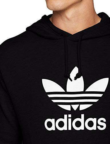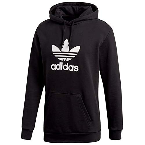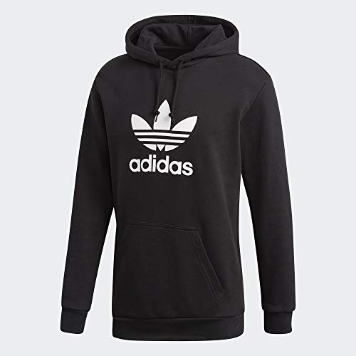– Adidas Sweater- Modell: TREFOIL HOODIE- Farbe: Schwarz- Herstellerfarbe: Black- ArtikelNr.: DT7964- 100% Baumwolle – Regular Fit- Kapuze mit Tunnelzug- weißer Logodruck- elastischer Rippbund- Kängurutasche- weiches Material
