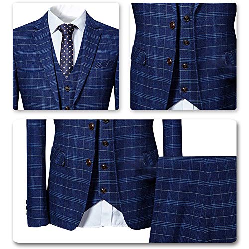 Herren Anzug 3-Teilig Slim Fit Kariert Sakko für Hochzeit und Party, spezielle Design für Business und Arbeit, Formelle, Hochzeit und Party. Fashionabel, bequem und elegant. Mit unserer hohen Kleidungqualität und professionalem design können sie mehr eleganter und faszinierender wird. Material: Polyester und Viskose, hohe Stoffqualität und gut vernäht, hohe Lenbensdauer . Passform: Europäische Größe, Slim Fit Schnitt, perfekte Passform und zeitlosen Style.Details: Beinhaltet: Anzugjacke, Anzugweste, Anzughose.Fallendes Revers, Zwei Pattentaschen vorne,Eine Brusttasche,Zwei Einschubtaschen vorne und Leistentaschen hinten,Haken mit Reißverschluss.Pflegehinweis: Chemische Reinigung, nicht bleichen, nicht im Wäschetrockner trocken, Bügeln gringe Hitze.