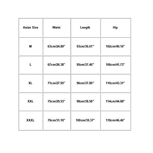 ✂✂———————–Größentabelle(cm / inch)—————————✂✂ Asian Größe: M –Taille: 63cm/24.80'' –Länge: 93cm/36.61'' –Hüfte: 102cm/40.16'' Asian Größe: L –Taille: 67cm/26.38'' –Länge: 95cm/37.40'' –Hüfte: 106cm/41.73'' Asian Größe: XL –Taille: 71cm/27.95'' –Länge: 96cm/37.80'' –Hüfte: 110cm/43.31'' Asian Größe: XXL –Taille: 75cm/29.53'' –Länge: 98cm/38.58'' –Hüfte: 114cm/44.88'' Asian Größe: XXXL –Taille: 79cm/31.10'' –Länge: 100cm/39.37'' –Hüfte: 118cm/46.46'' ➣Vor dem Kauf überprüfen Sie bitte die Detailgröße des Produkts. Kundenzufriedenheit ist unsere oberste Priorität. Wir wünschen Ihnen ein angenehmes Einkaufen! ➣ Nachdem sie bestellt haben, werden wir ihre Ware so schnell wie nur möglich verschicken. Falls sie noch irgendwelche Fragen haben, können sie uns jederzeit kontaktieren. Wir werden ihre Frage binnen 24 Stunden beantworten.
