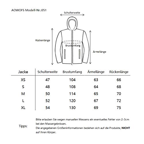 AOWOFS ist unsere eingetragene Marke, als ein professioneller Hersteller und Händler garantieren wir Ihnen die einwandfreie Qualität von unseren Produkte.Herren Jacke Biker Motorrad Kunstlederjacke Slim Fit Modern Lederjacke mit Kapuze Schwarz – Elegant bei der Arbeit und Casual in der Freizeit Produktinformationen: Material: PU-KunstlederEdition Typ: Normaler TypDicke: NormalÄrmel: lange ÄrmelStil: Casual Pflegehinweis: Nicht waschen, chemisch reinigen, nicht bleichen, nicht im Wäschetrockner trocken, bügeln gringe Hitze. Größe Notes: XS: Schulterweite 47cm / Brustumfang 104cm / Ärmellänge 63cm / Rückenlänge 66cmS: Schulterweite 48,5cm / Brustumfang 108cm / Ärmellänge 64cm / Rückenlänge 68cmM: Schulterweite 50cm / Brustumfang 114cm / Ärmellänge 65cm / Rückenlänge 70cm L: Schulterweite 52cm / Brustumfang 120cm / Ärmellänge 67cm / Rückenlänge 72cmXL: Schulterweite 54cm / Brustumfang 130cm / Ärmellänge 69cm / Rückenlänge 75cmAchtung: 1. Bitte achten Sie darauf, dass das manuelle Messen ein eventuelles Fehler von 2-3cm bei den Massergebnissen gestatten könnte. 2. Bitte achten Sie darauf, dass es wegen Monitor-Einstellungen kleine Abweichungen bei den Produktfarben geben könnte.Lieferung:Wir versenden in 3-5 Tagen per Post Ihre Bestellungen. Zur Auswahl bieten wir Ihnen Standard-Versand und Express-Versand. Durch den Standard-Versand benötigen die Pakete in der Regel etwa 7-15 Werktage, bis sie Ihnen zugestellt werden. Durch den Express-Versand benötigen die Pakete in der Regel etwa 4-6 Werktage, bis sie Ihnen zugestellt werden.
