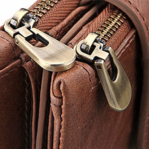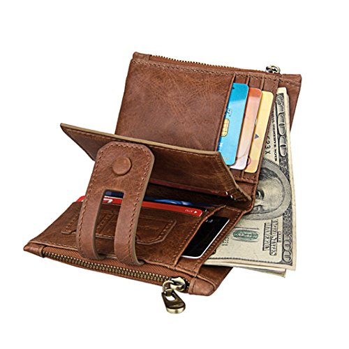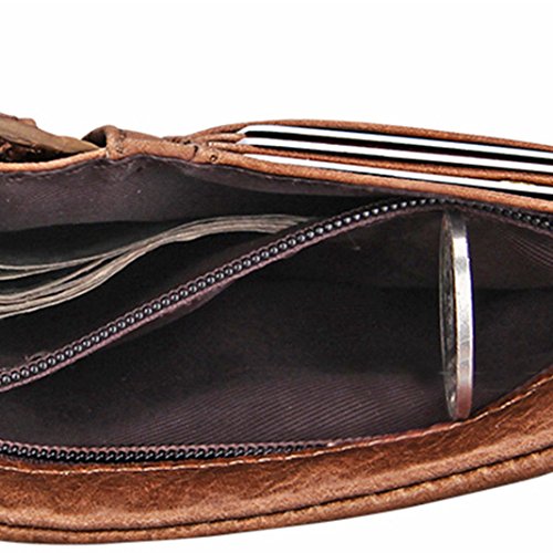 Die Geldbörse ist ein Globetrotter der besonderen Art. Geradlinig und elegant steht uns dieser Prachtkerl stets zur Seite. Dank des kompakten Auftretens kann man die Geldbörse perfekt in der hinteren Hosentasche verstauen. Wir können es kaum noch erwarten, uns mit diesem Liebling ins nächste Abenteuer zu stürzen.Material: LederGewicht:ca. 120 Gramm im Inneren: mit 1 Großer Sitz, 2 Kartensitze, 1 Fotositz, 5 dunkle Kästen, 3 Zipper Dunkle KästenDarüber hinaus hat die praktische Geldbörse zwei Geldscheinfächer und ein großes Münzfach. Außerdem gibt es ein größeres Fach mit Reißverschluss und nochmals vier zusätzliche Einsteckfächer.Das weiche Rindsleder liegt sehr angenehm in der Hand und ist sehr solide verarbeitet. Sie werden lange Freude an diesem exklusiven Portemonnaie haben.Maße: Breite ca. 9.5 cm / Höhe ca. 12.1 cm / Tiefe ca. 3,5 cm
