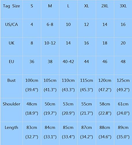 Material: Polyester Farbe: Schwarz / Dunkelgrau Packungsinhalt: Kleid Bitte beachten Sie: 1. Es gibt 2-3% Unterschied nach manueller Messung. 2.Bitte überprüfen Sie die Maßtabelle sorgfältig, bevor Sie den Artikel kaufen.1 Zoll = 2,54 cm 3.Bitte beachten Sie, dass ein geringer Farbunterschied aufgrund des Lichts und des Bildschirms akzeptabel sein sollte. Über Review: 1. Wir bemühen uns, dass Sie ein angenehmes Einkaufserlebnis bei uns haben, damit wir mehr mit Ihnen Geschäfte machen können. Wenn es irgendeine Unzufriedenheit gibt, mailen Sie uns bitte, bevor Sie 1 oder 2 Bewertungen, negatives Rückgespräch lassen. Wir werden unser Bestes versuchen, um die Probleme zu lösen. Bitte geben Sie uns die Möglichkeit, ein Problem zu lösen. 2. Wenn Sie mit unserem Service zufrieden sind, lassen Sie uns bitte ein positives Fünf-Sternerückgespräch. Ihre Anerkennung wird uns zuversichtlicher machen, das Geschäft weiterzuentwickeln und Ihnen einen besseren Service zu bieten.