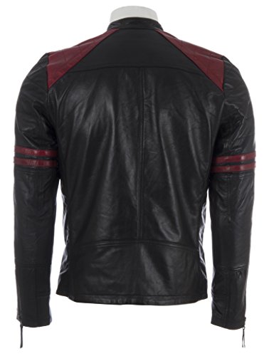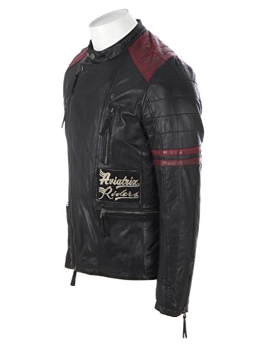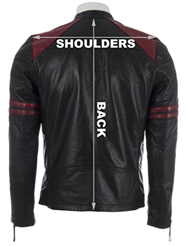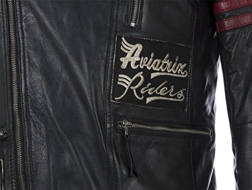 – Biker inspirierte Männer sehr weiche echtes Lederjacke – Speziell ausgewählter Schaffell-Napa / Nappaleder – Gepolsterte Ellbogen und zwei rote Streifen an den Armen – Zwei Reißverschlusstaschen – Kreative rote und schwarze Lederverkleidung auf Schultern – Kreative rote und schwarze Lederverkleidung auf Schultern – Vorderseite der Jacke – Zwei Innentaschen, weißes und blaues gestreiftes Futter – Doppelstock befestigter Kragen – Reißverschluss vorne mit Zapfenverschluss und Reißverschluss
