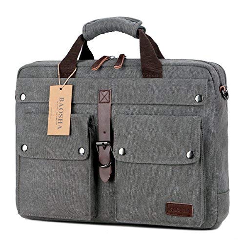 Die BAOSHA Leinwand Aktentasche ist eine großartige Wahl für alle, die eine Tasche suchen, die robust, geräumig und stilvoll ist. Die Tasche besteht aus hochwertigem 16 Ann hohen Dichte Canvas und PU Leder, das robust und langlebig ist. Sie bietet genügend Platz für 14~17 Zoll Laptops, A4-Bücher, Tablets, Kleidung und andere wichtige Utensilien.