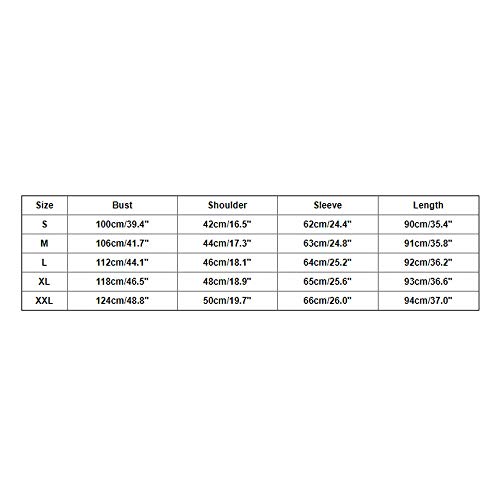 RISIKOFREIER KAUF: niedriger Preis, qualitativ hochwertige Produkte. Kostenloser Rücktausch, Qualitätsservice, bitte seien Sie versichert zu kaufen.Die Standard-Logistik kommt in 12 bis 20 Tagen an und die Express-Lieferung in 1-3 Werktagen.Größe: S Fehlschlag: 100 cm / 39,4 „Schulter: 42 cm / 16,5“ Ärmel: 62 cm / 24,4 „Länge: 90 cm / 35,4″Größe: M Fehlschlag: 106 cm / 41,7 „Schulter: 44 cm / 17,3“ Ärmel: 63 cm / 24,8 „Länge: 91 cm / 35,8″Größe: L Fehlschlag: 112cm / 44.1 „Schulter: 46cm / 18.1“ Ärmel: 64cm / 25.2 „Länge: 92cm / 36.2″Größe: XL Fehlschlag: 118 cm / 46,5 „Schulter: 48 cm / 18,9“ Ärmel: 65 cm / 25,6 „Länge: 93 cm / 36,6″Größe: XXL Fehlschlag: 124 cm / 48,8 „Schulter: 50 cm / 19,7“ Ärmel: 66 cm / 26,0 „Länge: 94 cm / 37,0″Eigenschaften:1.Es ist aus hochwertigen Materialien gefertigt, langlebig genug für Ihr tägliches Tragen2. Stil- und Modedesign machen Sie attraktiver und schöner3. bequemes material, geeignet für eine vielzahl von anlässen.Produktinformation:Saison: Frühling, Herbst Winter, SommerGeschlecht: MannGelegenheit: lässig, Party, Strand, ArbeitMaterial: Baumwolle + PolyesterMustertyp: GedrucktStil: lässig, hübsch,Hülsenlänge: lange HülseFit: Fällt der Größe entsprechend ausDicke: StandardWie zu waschen: Handwäsche kalt, aufhängen oder trocknen lassenWas Sie bekommen: 1 X Männer Mantel