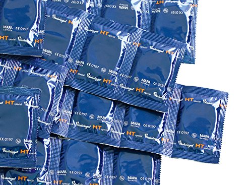 HT SPECIAL Blausiegel 100er Beutel mit 100 Einheiten von Kondomen Blausiegel HT Special einzeln verpackt. Latex, transparent, einfach zu bedienen und eine Nenngröße von 52 mm.