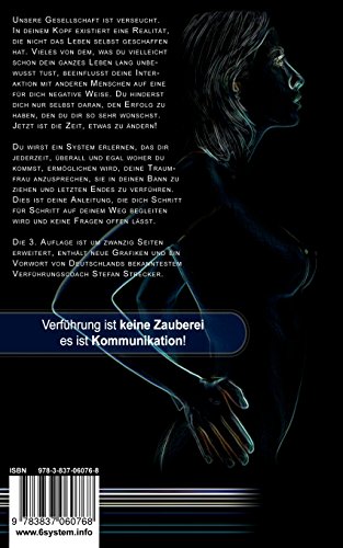 Unsere Gesellschaft ist verseucht. In deinem Kopf existiert eine Realität, die nicht das Leben selbst geschaffen hat. Vieles von dem, was du vielleicht schon dein ganzes Leben lang unbewusst tust, beeinflusst deine Interaktion mit anderen Menschen auf eine für dich negative Weise. Du hinderst dich nur selbst daran, den Erfolg zu haben, den du dir so sehr wünschst. Jetzt ist die Zeit, etwas zu ändern! Du wirst ein System erlernen, das dir jederzeit, überall und egal woher du kommst, ermöglichen wird, deine Traumfrau anzusprechen, sie in deinen Bann zu ziehen und letzten Endes zu verführen. Dies ist deine Anleitung, die dich Schritt für Schritt auf deinem Weg begleiten wird und keine Fragen offen lässt. Die 4. Auflage ist um zwanzig Seiten erweitert, enthält neue Grafiken und ein Vorwort von Deutschlands bekanntestem Verführungscoach Stefan Strecker. Zusätzlich finden sich schlagfertige Antworten auf die häufigsten weiblichen Fragen, die im Verführungsprozess aufkommen.