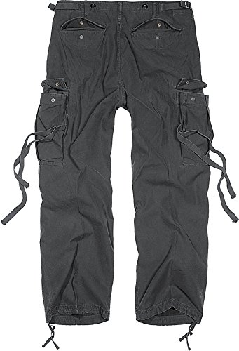 BRANDIT M65 Vintage Trouser Der Klassiker unter den Army-Style Hosen im typischen M65 Format.Bequeme Loose-Fit Freizeit Pant aus weichem Baumwollstoff. Besonders ins Auge fallen die Bänder an den Beintaschen der Hose,so daß die Hosenbeine hochgekrempelt und damit fixiert werden können. Selbstverständlich können die Bänder auch durch einen seitlichen Schlitz in den Cargo Taschen verschwinden und sind somit von außen nicht sichtbar. – 2 große Bein-Cargotaschen – 2 Front-Doppel-Taschen (Eingriffstaschen + zusätzl. aufgesetzte Pattentaschen mit Druck-Knopfverschluss) – 2 Gesäß-Taschen – Zip-Fly (Bund wird mit RV geschlossen) – weitenverstellbarer Beinsaum durch Kordelzug – Weitenregulierung am Bund durch Taillengurte – Dehnfalten im Kniebereich Material: 100% Baumwolle Vintage-Style: der Artikel wurde mit einem speziellen Verfahren bereits bei der Produktion vorgewaschen (bzw. bearbeitet) um so einen dezenten aber authentischen Used-Look zu erzeugen. Größe / Maße: S (W30) – Bund (halber Umfang) = 39 cm – Schrittlänge (Schritt bis Beinende) = 78 cm – Gesamtlänge = 107 cm M (W32) – Bund (halber Umfang) = 41 cm – Schrittlänge (Schritt bis Beinende) = 80 cm – Gesamtlänge = 109 cm L (W34) – Bund (halber Umfang) = 43,5 cm – Schrittlänge (Schritt bis Beinende) = 83 cm – Gesamtlänge = 110 cm XL (W36) – Bund (halber Umfang) = 46 cm – Schrittlänge (Schritt bis Beinende) = 85 cm – Gesamtlänge = 111 cm XXL (W38) – Bund (halber Umfang) = 48,5 cm – Schrittlänge (Schritt bis Beinende) = 88 cm – Gesamtlänge = 112 cm