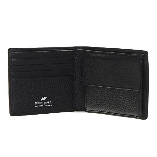 Herren Leder Geldbörse der Serie Turin von Braun Büffel. Gut zu sehen der kleine Büffel von Braun Büffel.Marke: Braun BüffelSerie: TurinAußenmaße (LxBxH): 10.5cm x 9cm x 2cmBörsenart: HerrengeldbörseFormat: QuerformatGewicht in kg: 0.07kgMaterial: LederKreditkartenfächer: 4Münzfächer: 1Scheinfächer: 2Steckfächer: 2Verschlussart: offen