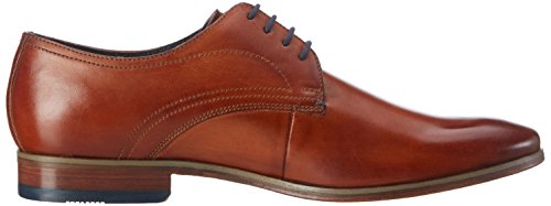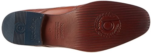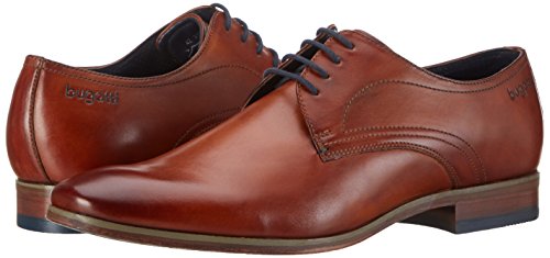 bugatti Business-Herrenschuhe BraunFeines glänzendes Glattleder mit dezenten Farbschattierungen bildet das Obermaterial dieser überzeugenden Business-Schuhe. Schwungvoll geführte Ziernähte und das farblich abgesetzte bugatti-Label zieren den Schuh. Es werden zwei verschiedenfarbige Schnürsenkel mitgeliefert, welche Sie nach Belieben austauschen und gestalten können. Dass bugatti Wert auf Komfort legt zeigt auch die Innenausstattung aus Synthetik und die Laufsohle die komplett aus Leder besteht. Auf den 30mm Absatz wurde ein dünner Gummibelag aufgebracht, damit Sie nicht ins rutschen kommen. Besonders erwähnenswert ist ausserdem das Wechselfußbett, was ideal für Einlagenträger ist.