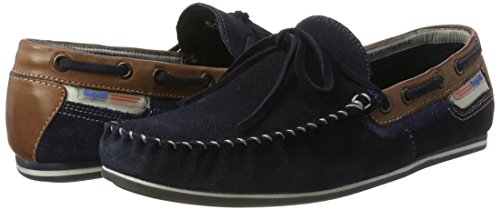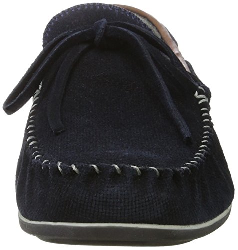 Mokassin – in einem eleganten Mix aus Nubuk- und Glattleder – mit einer feinen Lederschleife auf der Schuhmitte – Ferse und Einstieg aus braunem Glattleder – mit einem blickfangenden, in Weiß untersetzten Logo an der Außenseite – klassische Ziernaht und Zierstreifen in der Sohle wirkungsvoll in Hellgrau abgesetzt – gepolsterte Decksohle – Farbe: Dunkelblau, Braun, Grau, Weiß – Verschluss: Offen, schlupf – Schuhspitze: Karree – Sohle: Hochwertiger Kunststoff – Decksohle und Innenmaterial: Leder, Textil – Obermaterial: Nubukleder, Glattleder