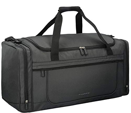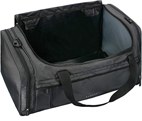 Die praktische Bugatti Lima Reisetasche mit festem Boden eignet sich für verschiedene Verwendungszwecke. Man kann sie als kleine Reisetasche, Weekender, Sporttasche uvm. verwenden. Sie verfügt über einen abnehmbaren Umhängeriehmen und ein gepolstertes Griffband. Das Design besticht durch einen schicken, sportlichen Look. Die zusätzlichen Seitentaschen ermöglichen das Verstauen verschiedenster Accessoires. Zusätzlich verfügt die Tasche über ein Reißverschluss-Frontfach. Der Clou: Die Materialeigenschaften erlauben es, die Reisetasche in leerem Zustand extrem flach zu komprimieren. Somit benötigt die Reisetasche wenig Stauplatz in Schränken, Koffern, etc..Marke: BugattiSerie: LimaAußenmaße (LxBxH): 75cm x 32cm x 30cmGepäckart: WeichgepäckGewicht in kg: 1.29kgMaterial: PolyesterExtras: Tragegriff, BodennägelAusstattung: Tasche(n) außen, ReißverschlussfachVerschlussart: ReißverschlussVolumen in L ca.: 51-60