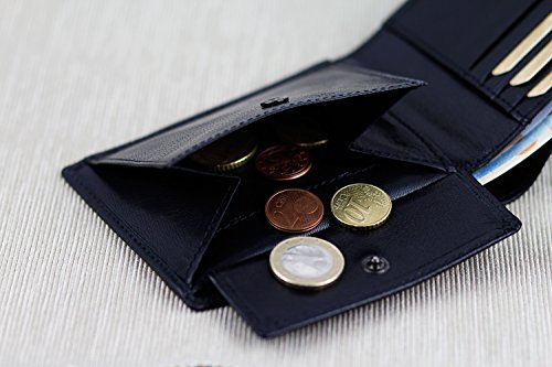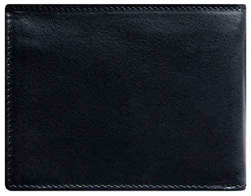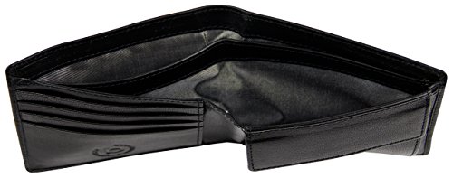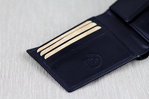 bugatti Herren-Geldbörse aus Echtleder im klassischen Querformat Maße geschlossen: Breite ca. 11,5 cm, Höhe ca. 9,0 cm, Tiefe ca. 1,5 cm Maße offen: Breite ca. 23 cm, Höhe ca. 9,0 cm Gewicht: ca. 70 g Farbe: schwarz Ausstattung 4 Fächer für Kreditkarten, EC Karten, Führerschein, etc. 1 Seitenfäch für Personalausweis, Bilder, Kalender, etc. 2 Geldscheinfächer 1 Fach für Kleingeld / Münzgeld mit Druckknopf Material 100% Echtleder mit dezenter Prägung Lieferumfang 1x bugatti® Echtleder-Geldbörse in schwarz