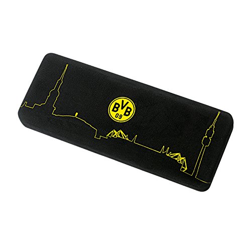 Beste Sicht auf die Stadt. In diesem BVB-Brillenetui sind Brille oder Sonnenbrille bestens geschützt. Mit der Skyline von Dortmund darauf ist es außerdem mehr als nur eine nützliche Schutzhülle. Schwarz auf Gelb sieht man immer gerne, da könnt Ihr das Etui ruhig mal vorzeigen. Übrigens ist auch ein Brillentuch mit Skyline-Druck und BVB-Logo dabei.Mit Brillentuch im Skyline DesignMaße: 15,5 cm breit, 6,5 cm hoch, 5 cm tiefMetall, Mikrofaser