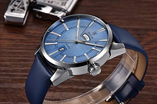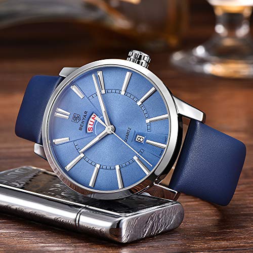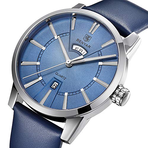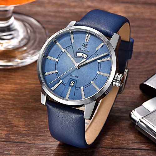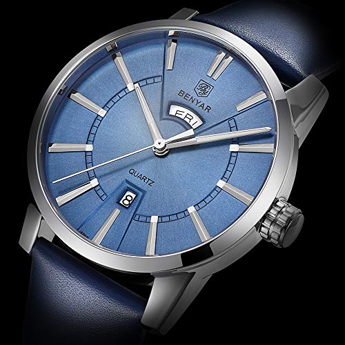 BY BENYAR Armbanduhr für Männer BY BENYAR bietet eine große Auswahl an Kollektionen in innovativen Designs, die aus hochwertigem Edelstahl und echtem Leder gefertigt sind, um robuste und stilvolle Armbanduhren herzustellen. Eine Qualitätsuhr zu einem erschwinglichen Preis macht BY BENYAR zur klugen Wahl für jeden Kunden. Das Armband der Uhr besteht aus hochwertigem Material. Jede Uhr wird in einer unabhängigen Verpackung geliefert und sorgt für Produktsicherheit – eine Freude für alle, die dies als zukünftige Gegenwart erhalten. Merkmale und Vorteile: Langlebige Armbanduhr in Premium-Qualität Quarzwerk mit analoger Anzeige 30M wasserdicht Premium-Qualitätsband Kratz- und wasserabweisend: Die Uhr ist 30 Meter wasserdicht und kann Schweiß, versehentlichen Regen oder Spritzwasser tragen. Jetzt müssen Sie Ihre Armbanduhr nicht abnehmen, während Sie Ihre Hände waschen oder bei anderen täglichen Aktivitäten. Die Uhr wird auch mit einem kratzfesten Glas geliefert, das das Zifferblatt abdeckt und für ein glänzendes und glattes Aussehen sorgt. Ein Jahr Garantie: Hier bei BY BENYAR verpflichten wir uns zu 100% Kundenzufriedenheit und bieten nur Originalprodukte an. Wir bieten jedoch eine einjährige eingeschränkte Garantie auf unsere Uhren. Nehmen Sie Kontakt mit uns auf und wir helfen Ihnen auf jede mögliche Weise. Wenn Sie mit unserem Produkt oder unserer Dienstleistung immer noch nicht zufrieden sind, bieten wir Ihnen innerhalb von 90 Tagen nach dem Kauf eine vollständige Rückerstattung. Klicken Sie nun auf „In den Warenkorb“ um sich diese stilvolle Armbanduhr zu schnappen, bevor Sie die Gelegenheit verpassen.