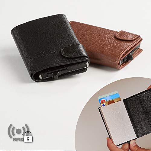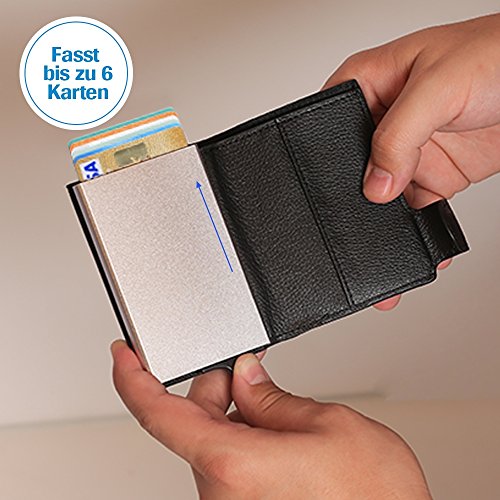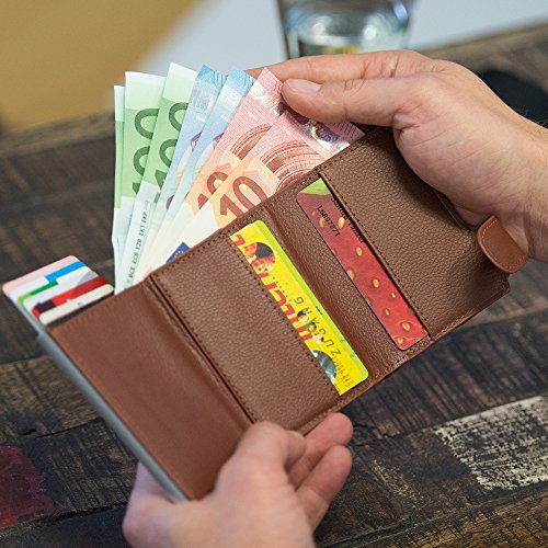 Machen Sie Schluss mit Datenklau und holen Sie sich die absolut sichere Geldbörse! Card Guard verfügt über das datensichere Alu-Protect-Case, das bis zu 6 Chip Karten fasst, diese schützt und jeglichen Datendiebstahl verhindert. Zusätzlich ist Card Guard mit der einzigartigen Slide-Control-Mechanik ausgestattet, die Ihre Karten kontrolliert aufgefächert und immer griffbereit ausfahren lässt. Die revolutionäre Stop-Drop-Technik verhindert, dass die Karten aus dem Fach fallen – sogar wenn Sie Card Guard auf den Kopf stellen. Maße: 100mm x 70mm x 20mm Lieferumfang: – 1x Card Guard braun – 1x Card Guard schwarz