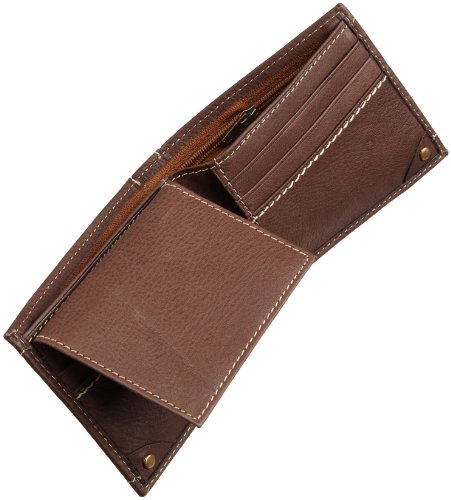 Vollnarbenleder Sechs Kreditkartenfächer und zwei Seitentaschen Tasche mit Reißverschluss und 'Ersatzschlüsselfach' Zwei ID-Fenster auf abnehmbarem Kreditkartenfach Geschenkbox