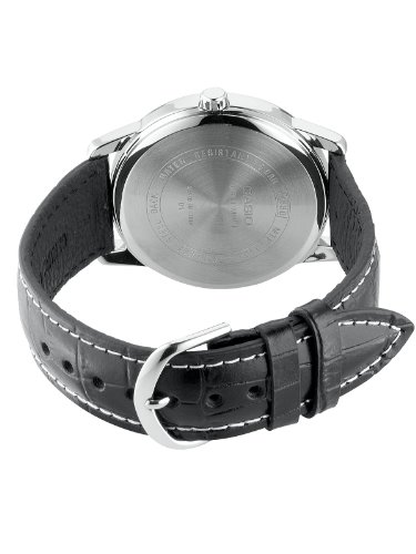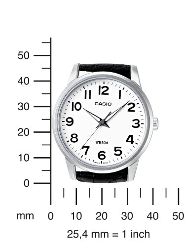 Casio Collection MTP-1303PL-7BVEF Herrenuhr Edelstahlgehäuse, silberfarbene Beschichtung, poliert Echtlederarmband, Schwarz, Dornschließe Quarzuhrwerk, Batteriebetrieben 50 Meter Water Resistant Gehäusebreite ca. 40 mm Lieferung mit Booklet.