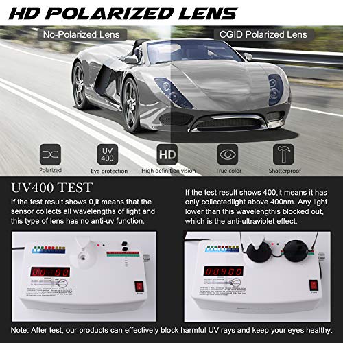 Wie schützen CGID Lennon Stil Sonnenbrillen Ihre Augen? CGID Sonnenbrillenumfassen einen UV400 Schutz. Dieser schützt Ihre Augen vor schädlichen Strahlen. UV400 bezieht sich auf die Reaktion mit ultravioletter Strahlung. UV Strahlen sind Sonnenlicht mit einer Wellenlänge von 200nm~380nm. Dies schadet hauptsächlich der Hornhaut des Auges, der Lines und anderem Gewebe. CGID Sonnenbrillen nutzen polarisierte Linsen. Diese können Ihre Sicht klarer gestalten. Polarisierte Linsen können Glanz filtern und wurden so gestaltet, dass sie Ihre Augen schützen. Sie eignen sich zum Fahren, Bootfahren, Skifahren und andere Aktivitäten; die Linsen filtern den durch Reflektionen des Sonnenlichts verursachten Glanz aus Straßen, Wasser und Schnee. Polarisierte Linsen sind in der Regel flexibler und eignen sich für das Tragen unter verschiedenen Bedingungen, während Freizeitaktivitäten ausgeführt werden. CGID Sonnenbrillen haben 4-fachen Beschichtungsschutz(UV Blockierung/Strahlungsblockierung/Antistatisch/Anti-Öl) Neben der UV-Blockierung, Strahlungsblockierung und der antistatischen Beschichtung, umfassen die Linsen noch weitere hochwertige Beschichtungen: Anti-Öl Beschichtung, was das Haften von Öl auf der Linse verhindert; Mit dieser Art von Linse werden keine Fingerabdrücke hint.