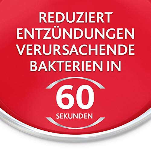 Keine Mundspülungsmarke wird von Zahnärzten bei bakteriell bedingter Zahnfleischentzündung häufiger empfohlen! Chlorhexamed FORTE alkoholfrei 0,2 % Mundspüllösung hilft bei der Bekämpfung von Bakterien in der Mundhöhle und leistet so einen wichtigen Beitrag zur Mundgesundheit. Chlorhexamed FORTE alkoholfrei 0,2 % ist eine antibakterielle Mundspülung, die zur vorübergehenden unterstützenden Behandlungen bei bakteriell bedingten Zahnfleischentzündungen (Gingivitis) angewendet wird. Der Wirkstoff Chlorhexidindigluconat, abgekürzt Chlorhexidin, tötet Bakterien in 60 Sekunden und verhindert die Anhaftung von Bakterien durch Bildung eines schützenden Films auf Zähnen, Zahnfleisch und der Mundschleimhaut. Dadurch schützt es die Zähne bis zu 12 Stunden vor übermäßiger Plaque-Neubildung und hilft so bei Zahnfleischentzündungen. Die antiseptische Lösung wird angewendet zur vorübergehenden Keimzahlverminderung im Mundraum, Unterstützung der Heilungsphase nach parodontalchirurgischen Eingriffen durch Hemmung der Plaque-Bildung, vorübergehenden unterstützenden Behandlung bei bakteriell bedingten Zahnfleischentzündungen (Gingivitis) und bei eingeschränkter Mundhygienefähigkeit. Chlorhexamed ist der Marktführer unter den Mitteln gegen Zahnfleischentzündungen.* Zahnärzte empfehlen Chlorhexamed bei bakteriell bedingter Zahnfleischentzündung. *IMS, DE Mittel gegen Mund- und Zahnfleischentzündung, Apotheke + Versandhandel, Gesamtjahr 2017
