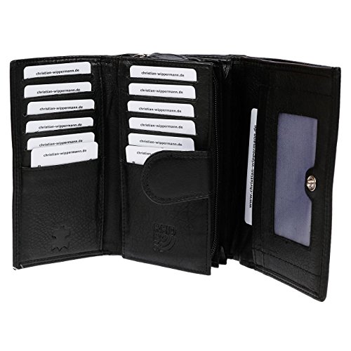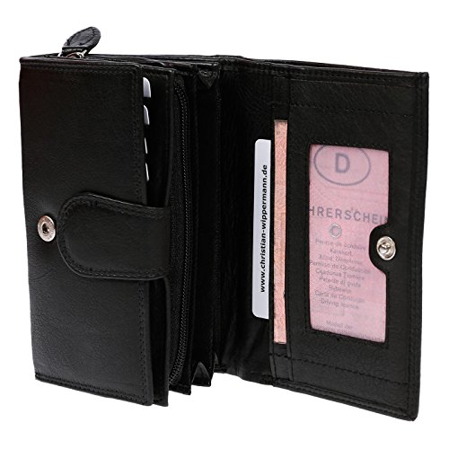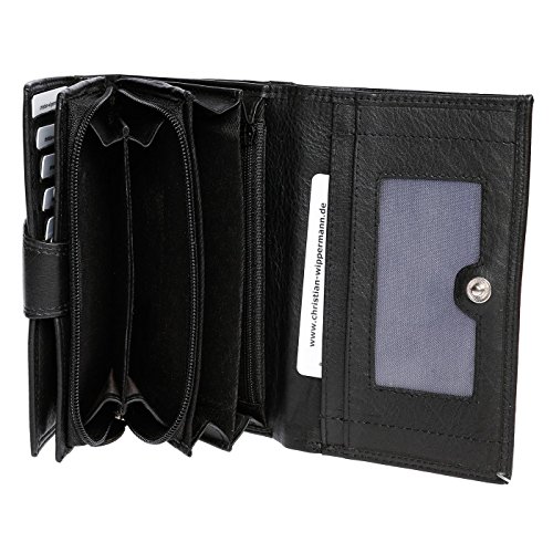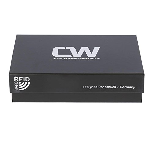 Hochwertige und Edle Damengeldbörse von der Marke Christian Wippermann mit RFID-Schutz Maße: Breite ca. 15,5 cm , Höhe ca. 9,5 cm , Tiefe ca 4 cm Material: Rindleder 4 Dokumentenfächer 3 Geldscheinfächer 12 Kreditkartenfächer 1 Fach auf der Rückseite Logoprägung auf der Vorder-und Rückseite Lederlasche mit Druckknopf in der Geldbörse 1 Fach für ,,alten“ Personalausweis mit Sichtfenster 1 großes Münzfach mit Reißverscluss (Aufgeteilt in 3 Fächer) RFID Secure Technologie: Unsere Brieftasche ist mit fortschritlichen RFID Secure Technologie ausgestattet, sie sind spezial dafür entwickelt RFID-Signale von Geldkarten, Kreditkarten usw. zu blockieren und die wertwollen Daten vor unbefugten zu schützen. Die Geldbörse wird inklusive der sehr edelen und hochwertigen Geschenkbox mit Einlegepapier verschickt GELD-ZURÜCK-GARANTIE: Solllten Sie nich zu 100% zufrieden sein, so können Sie den Artikel innerhalb von 14 Tagen zurücksenden, ohne Wenn und Aber!!!! Christian Wippermann steht für klassisches zeitloses Design, das durch Qualität und Funktionalität überzeugt. Gerne nehmen wir Ihre Anregungen entgegen und freuen uns über Ihre Produktrezension