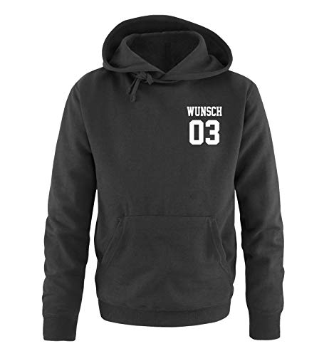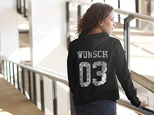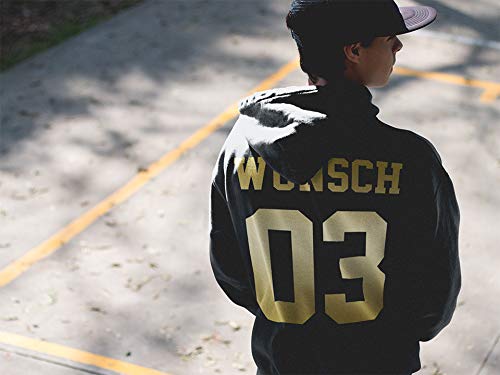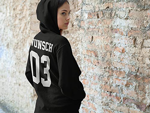 Individualisierbarer Pärchen, Family & Friends-Hoodie mit Wunschnummer & WunschzahlDieser Hoodie macht es möglich, durch individuellen Druck Zusammengehörigkeit und Freundschaft auszudrücken. Ganz nach Belieben kann das Sweatshirt mit dem Wunsch-Namen und der individuellen Wunschzahl bedruckt werden. Ob beste Freunde, Mann und Frau Eltern und Kinder – alle werden die „Message“ lieben. Eine umfangreiche Auswahl an Größen-, Print- und Farbkombinationen hält für jeden Geschmack etwas bereit. Dieses lässige Sweatshirt mit individuellem Touch ist ein tolles Geschenk für den Jahrestag, zum Geburtstag oder einfach als kleine Aufmerksamkeit zwischendurch.Pärchenshirts individuell mit dem Wunschnamen und der Wunschzahl bedrucken – Wie geht das?Bei diesem Artikel muss ein WUNSCHNAME und eine WUNSCHNUMMER angegeben werden. Wenn Sie eine Größen und Farbe gewählt haben, können sie Ihre Wunschdaten im Laufe der Bestellung eingeben.WICHTIG: Bitte beachten Sie, dass es sich bei diesem Artikel um eine individuell für Sie gefertigten Hoodie handelt und dieser daher vom Umtausch ausgeschlossen ist.Details- Material: 50% Baumwolle / 50% Pölyester- Ärmellänge: Langärmlig- Ausschnitt: Kapuze- Druck: Flex- und Siebdruckverfahren für langanhaltende FarbechtheitÖkoTex – Die geprüfte Sicherheit für hautfreundliche Textilen.Alle von uns verwendeten Artikel sind nach Öko-Tex Standard 100 zertifiziert. Sie sind damit ökologisch unbedenklich. Was heißt das genau? Die zertifizierten Produkte von Öko-Tex werden seit 1992 auf mögliche Schadstoffe, auf gesundheitliche und hautfreundliche Verträglichkeit geprüft. Diese Prüfung wird jährlich wiederholt.