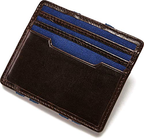 DER ENTERTAINERArtikelbeschreibung Alle Portemonnaies sind aus hochwertigem Leder gefertigt und werden in 4 verschiedenen Farben angeboten (schwarz, dunkelbraun, hellbraun und blau); Innen haben wir neben Leder auf hochwertiges Canvas zurückgegriffen welches entweder in Beige oder Marineblau verarbeitet wurde. Alle Produkte verfügen über eine hohe Verarbeitungsqualität um dich möglichst lange zu begleiten und Freude zu verbreiten. Für wen? Sie vergessen nie etwas, sondern wissen genau was Sie brauchen?Sie lieben Spontanität!? Es ist für Sie, wenn:Du magst es, auch die banalsten Momente in bereichernde Erfahrungen umzuwandeln. Sie sind immer umgeben von Menschen, die Sie mit Ihren reinen Charme um sich herum versammeln. Sie sind der Gesprächsstarter. Sie stehen im Mittelpunkt der Aufmerksamkeit und genießen Ihre Position sehr. Alles, was Sie besitzen, trägt zu Ihrer Persönlichkeit bei und Sie haben eine Geschichte für jedes dieser Objekte. Sogar Ihre Brieftasche, ein Gegenstand, den Sie überallhin mitnehmen, können Sie jedes Mal in neue Gespräche verwickeln. Aus diesem Grund entscheiden Sie sich für die magische Geldbörse. Mit ihrem großartigen Design und ihrer Funktionalität ist es die Art von Produkt, die nicht vorschreibt, wie Sie Ihre Artikel aufbewahren, und auch andere stets erstaunt sein werden. Eigenschaften:Schnitt: Easy FitSteckplätze: 6 externe Karten-Steckplätze; 2 innere, geeignet für Karten, Notizen oder VisitenkartenZusätzliche Elemente: 1 spezielles Magic-System; 18 Material- und Farbkombinationen (3 Lederarten; 2 Leinwandarten; 3 Gummibänder)NFC-Schutz: 3 äußere Kreditkartenfächer (auf der Logoseite) und 2 innere sind geschützt