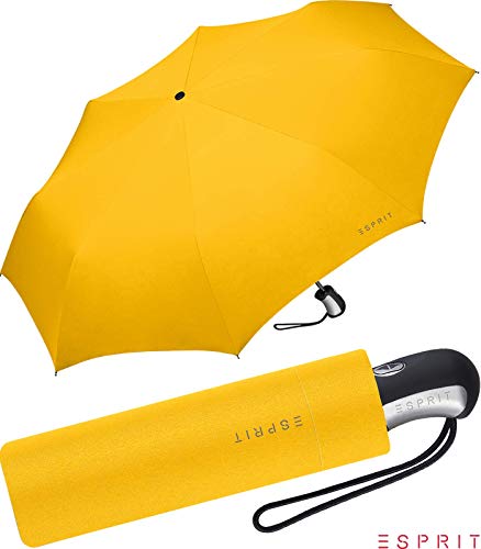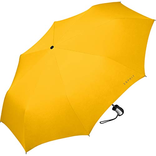 Sie mögen modische Eleganz verbunden mit Markenqualität. Dann ist dieser Taschenschirm von ESPRIT bestimmt richtig für Sie. Das stabile, aber dennoch leichte Gestell aus Aluminium hat eine bequeme Auf- und Zu Automatik und ein angenehm großes Dach, welches Sie zuverlässig vor Regen schützt.Die Farbe des Schirmdaches ist gelb, das verwendete Material besteht aus 100% Polyester. Groß und stabil wiegt der Schirm nur angenehme 315 Gramm. Geöffnet ist das Schirmdach 97 cm groß. Geschlossen misst der Regenschirm 28 cm. Der ESPRIT Damen Regenschirm ist mit eleganten Farben und modischen Designs versehen und passt sich modischen Trends konsequent an.