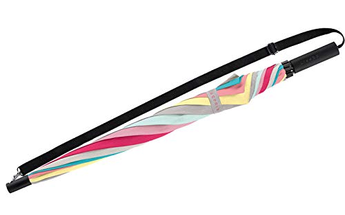 Jeder kennt das Gefühl zu wenige Hände zu haben, zu mindestens freie Hände. In einer Hand die Tasche, in der anderen den Regenschirm und dann müssen Sie noch an das Portemonnaie zum Bezahlen. Die Lösung zu diesem Problem ist so einfach wie genial. Hängen Sie sich Ihren Schirm einfach über die Schulter.Die Farbe des Schirmdaches ist multicolor, das verwendete Material besteht aus 100% Polyester. Groß und stabil wiegt der Schirm nur angenehme 415 Gramm. Geöffnet ist das Schirmdach 100 cm groß. Geschlossen misst der Regenschirm 73 cm. Die hochwertige Verarbeitung und das in modischen Farben gehaltene bunte Dach machen diesen Automatikschirm zu einem modisch zeitlosen Accessoires.