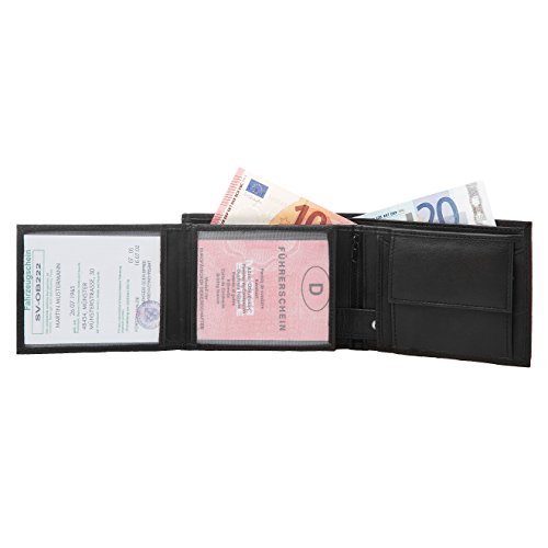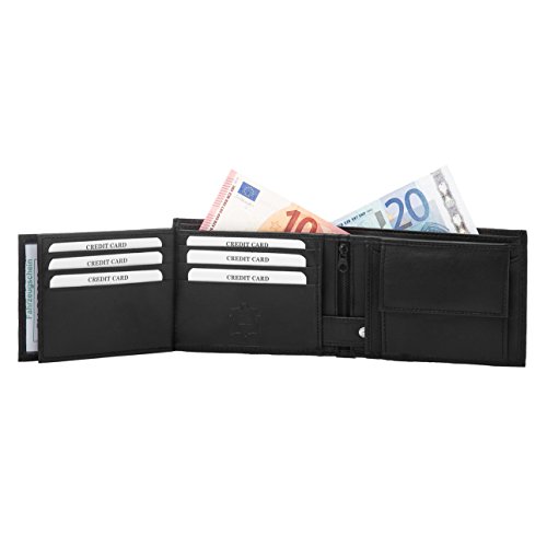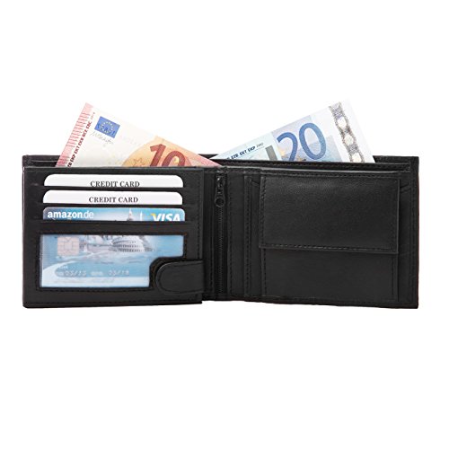 Diese Leder-Geldbörse ist sauber verarbeitet und hat ein sehr gutes Preis-Leistungs-Verhältnis! Ausstattung der Geldbörse: 8 Fächer für Kreditkarten (1x durchsichtig) 4 Fächer für Ausweise und Papiere usw. davon 2 mit Klarsichtfenster 1 großes Reißverschluss-Sicherheitsfach 2 getrennte Scheinfächer und 1 Münzfach mit Druckknopf Im geschlossenen Zustand sind die Maße ca. 12 x 9,5 x 1,8 cm. Markenware von Fa.Volmer. Achtung: die Geldscheine in den Abbildungen dienen nur zur Dekoration und werden nicht mitgeliefert.