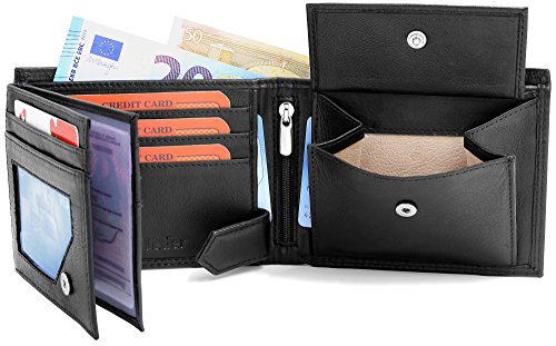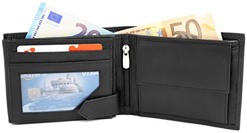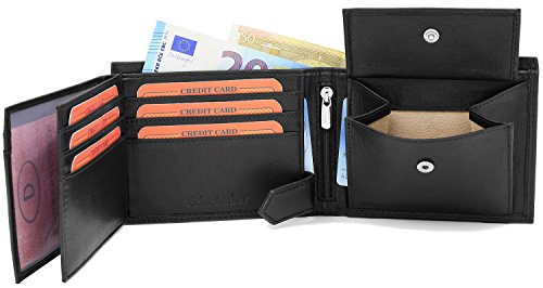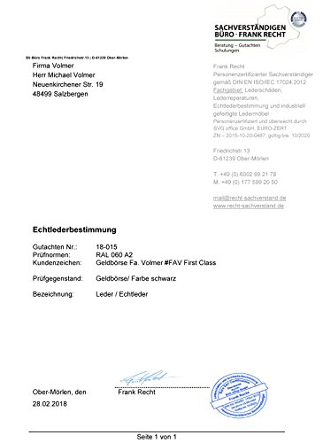 Vollleder-Geldbörse aus besonders hochwertigem Nappaleder FaV First-Class Luxusleder auch in den Scheinfächern. Für diese Geldbörse wurde kein preisgünstiges Leder verwendet, sondern es wurde das beste Nappaleder, das man noch für einen einigermaßen erschwinglichen Preis bekommen kann, verwendet. Die Kreditkartenfächer sind an der Einsteckseite nicht einfach eingeschnitten, sondern nach innen mit dem Leder überlappt und sogfältig vernäht.Das Münzfach und die Scheinfächer bestehen innen auch allseitig aus Echtleder. Diese Qualitätsvorteile spiegeln sich in der Langlebigkeit der Geldbörsen wider. Ausstattung der Geldbörse: 8 sorgfältig vernähte Fächer für Kreditkarten (geklebt und vernäht), 4 größere Fächer für Führerschein, Personalausweis, usw. 2 getrennte Scheinfächer aus Leder, 1 großes Reißverschluss Fach, 1 Münzfach allseitig aus Echtleder. Im geschlossenen Zustand sind die Maße ca. 12,5 x 9,8 cm. Markenware von Fa.Volmer®. Achtung: Die Geldscheine in den Abbildungen dienen nur zur dekorationszwecken und werden nicht mitgeliefert.