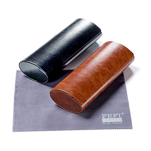 Das original FEFI Brillenetui in Leder-Optik mit Brillenputztuch in Optikerqualität – Neu in unserer Collection. Sicheren Schutz für Ihre Brille garantiert dieses wunderschöne Hardcover Etui, und dazu sieht es noch extrem edel aus. Es ist leicht, aber stabil und schützt Ihre wertvolle Brille. Der Magnetverschluß hält Ihr Etui sicher geschlossen und lässt sich trotzdem einfach öffnen. Innen sorgt ein schwarzer, weicher Bezug dafür, dass es keine Kratzer gibt und Sie lange Freude an diesem tollen Etui haben werden. Im Set mitgeliefert, wird ein hochwertiges Mikrofasertuch in Optikerqualität, das sich wohlwollend von oft hauchdünnen, billigen anderen Tüchern unterscheidet. Das gelieferte Bundle besteht aus: 1 Etui + 1 Mikrofasertuch