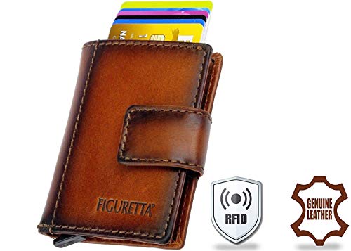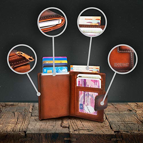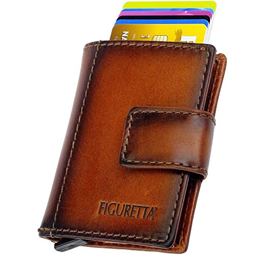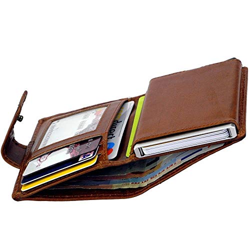 PREMIUM LEDER mit Aluminium-Etui aus Holland INNOVATIV durch Bewegung des kleinen Hebels werden die Karten wie in einem Lift versetzt nach außen geschoben, so dass die leichte Entnahme jeder einzelnen Karte möglich wird. SICHERHEIT für Ihre Karten – Sind Ihnen schon sensible Kreditkarten Informationen oder andere wichtige private Daten gestohlen worden? Die Kreditkarten sind jetzt sicher und können nicht herausfallen und sind dank Aluminiumprotector vor auslesen geschützt (RFID+NFC) IDEE & FUNKTION – Aluminium Etui lässt sich einfach herausnehmen und einzeln verwenden. Dadurch lässt sich der Protektor auch mit dem Hebel rechts in das Etui einsetzen und eignet sich herrvorragend auch für Linkshänder! Einzigartiges Zipper Münzfach außen. Angenehm griffige High-Tech-Aluminium-Oberflächen OUALITÄT MADE in HOLLAND – Wir legen sehr großen Wert auf die richtige Verarbeitung und setzen uns gegen billige Kopien aus China durch. Das patentierte Qualitätsprodukt aus Holland, mit großer Rücksicht auf Qualität, Mensch und Umwelt. Ausstattung  6 Kreditkarten finden im Alucase platz 3 Kartenfächer im Lederetui, davon eins mit Sichtfenster Einsatz, auch für Fotos oder ähnliches 2 kleine Einsteckfächer für Belege, Parkplatz oder Ticket Reißverschlussfach hinten für Kleingeld Inklusive edler Geschenkebox zum verschenken und aufbewaren   Maße: 10 x 7,5 x 2 cm Material: Premium vintage Rindleder >>Jetzt inklusive Gratis E-Book zur richtigen Lederpflege von uns geschenkt<