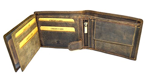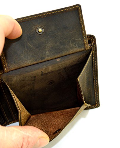 Die Börse ist eine Ledergeldbörse aus 100% Leder gearbeite. Mit Büffelbranding! Ausstattung der Geldbörse: 9 Kreditkarten Fächer und 2 große Geldscheinfächer sorgen für ausreichend Platz. Ein Reissverschlussfach mittig sowie 2 Geheimfächer innen. Ein Kleingeldfach. Maße: 12 cm x 9 cm x 1,5 cm Material: Leder 100% Farbe: Braun Dieser Artikel wurde in liebevoller Handarbeit gefertigt. Das hier verwendete Leder ist einmalig und nicht zu kopieren! KEIN STÜCK GLEICHT DEN ANDEREN. Kleine natürliche Hautfehler, wie insektenstiche oder Dornrisse und geringe farbliche Schattierungen sind KEIN Qualitätsmangel, sondern unterstreichen die Echtheit des beliebten Naturprodukts LEDER.