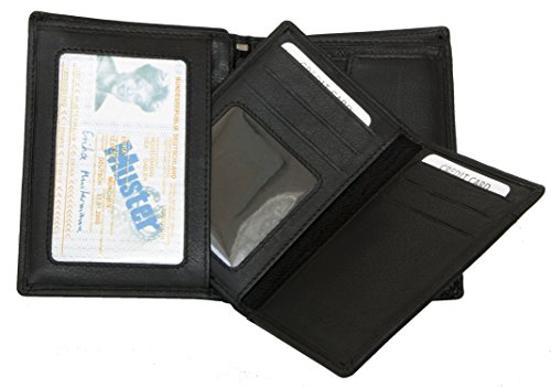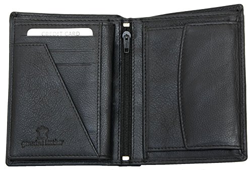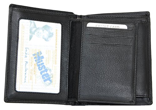 Herren Schwarzes Hochqualitäts Leder Portemonnaie mit Nappa-Vollenden mit abnehmbaren Dokumentenhalter 9,5 x 12,5 cm eine Brieftasche 7,6 x 11 abnehmbare Dokumentenordner