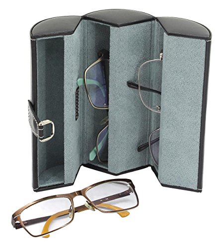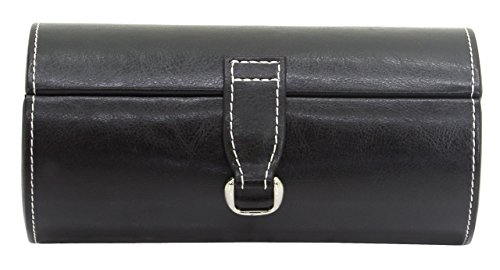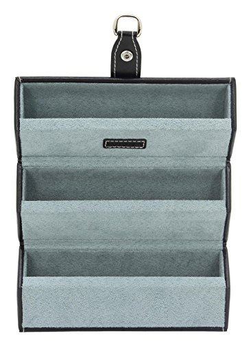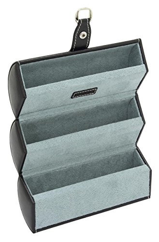 Brillenrolle Bond Schwarz 3 Fächer für Brillen einem Druckknopf als Verschluss mit angebrachten D-Haken zum Aufhängen einem Brillenputztuch aus weichem Velvet Maße: 18 x 9 x 9 cm