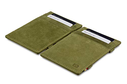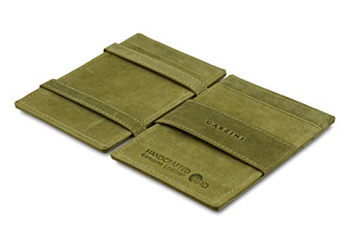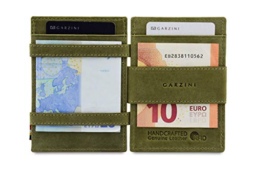 Das Magic Wallet von Garzini aus Echtleder ist ein ultradünnes Kreditkartenetui mit RFID-Schutz. Das Etui bietet Platz für bis zu 16 Karten, die in den speziellen Kartenfächern garantiert nicht durchrutschen. Die Schlitze außen für einen schnellen Zugriff sorgen für deutlich mehr Nutzungskomfort. Das Versaflex-System besteht aus starken und straffen Lederstreifen, die sich vollständig an den Inhalt anpassen und somit keinen Platz verschwenden. Quittungen und Notizen lassen sich so schnell und bequem aufbewahren. In diesem dünnen Kreditkartenetui aus Leder können Sie sämtliche Geldscheine der Weltund zudem auch dicke Visitenkarten sicher mitnehmen. Dank des schlanken Designs der Essenziale-Reihe ist es optimal als Etui für die Vordertasche geeignet.