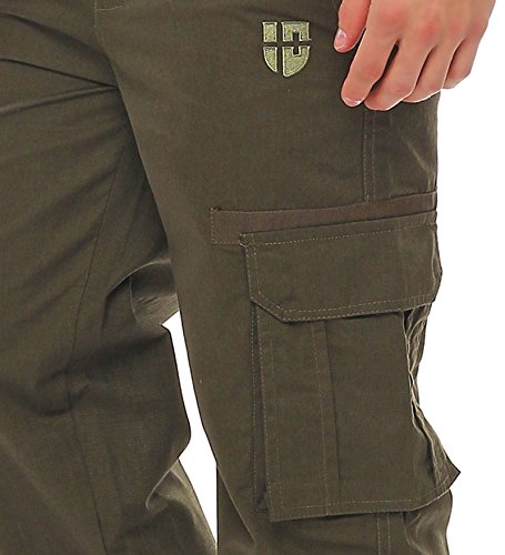 Gennadi Hoppe Cargo Hose Lang Unsere moderne und hochwertig genähte Hose ist funktionell und trendig zugleich. Produkteigenschaften: Funktionell überzeugt funktionell mit zwei Eingrifftaschen plus zwei Gesäßtaschen mit Knopfverschluss, Innenliegendes Zugband am Bund, zwei große aufgesetzte Taschen mit Knopfverschluss an den Beinseiten, Logo in Leder auf der rechten Tasche aufgenäht, Zugbänder an den Beinenden. Farbe: Camel, Camogrün, khaki, braun, blau, braun, schwarz Besonderheiten: Gürtellaschen ermöglichen das Tragen von Gürtel. Zugbänder lassen sich problemlos entfernen. Material: 80% Baumwolle, 20% Polyester Passform: etwas kleiner geschnitten. Gr. S Bundweite: 42cmGr. M Bundweite: 42,5cmGr. L Bundweite: 46cmGr. XL Bundweite: 49cmGr. XXL Bundweite: 50cmGr. 3XL Bundweite: 52cm Gesamtlänge variiert zw. 107 und 110cm, die Schrittlänge zw. 80 und 82cm Die Kleidung wird lose auf einer ebenen Fläche gemessen (der Unterschied kann + – 1-2 cm sein).Aufgrund der Lichtverhältnisse bei der Produktfotografie und unterschiedlichen Bildschirmeinstellungen kann esdazu kommen, dass die Farbe des Produktes nicht authentisch wiedergegeben wird.Schmuck & Accessoires sind nicht im Lieferumfang enthalten.