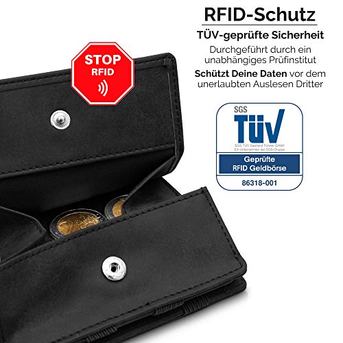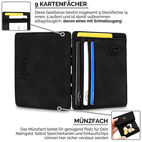 GenTo Design Germany® Sie sind auf der Suche nach einer hochwertigen Männer Geldbörse, die auch noch Ihre Daten schützt? Dieses Herrenportemonnaie verbindet zeitlos edles Design mit bester Qualität und schützt auch noch Ihre Daten. Die Auswahl bester Materialien und die sorgfältige Verarbeitung sorgen für eine lange Lebensdauer. RFID- und NFC-Funkchips sind mittlerweile in jeder neuen gängigen Geldkarte verbaut. Diebe haben somit leichtes Spiel um an Ihre Daten zu kommen, da die Karten diese ständig, unverschlüsselt und für jeden zugänglich an die Umgebung senden. Plastikschutzhüllen, die z.B. auch von Ihrer Hausbank ausgegeben werden, schützen Sie dagegen nicht. Das Portemonnaie bietet Ihnen: Platz für bis zu 15 Kreditkarten RFID- und NFC-Schutz für alle 15 Kartenfächer Ein großes Münzfach Ein Ausweisfach mit Sichtfenster Eingestanztes Logo edles Design Geschenkbox Maße des Portemonnaies: 12,6 x 9,4 x 2cm Gewicht ohne Verpackung: 109g Gewicht mit Verpackung: 159g Gönnen Sie sich diese Freude für einen eleganten Auftritt! Geldbeutel im Hochformat Platz für den Fahrzeugschein Männer Perfektes Geschenk für Männer