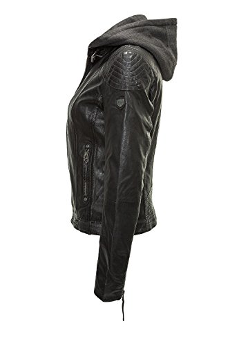 Damen Lederjacke von Gipsy Modischer Bikerstil Schmale Passform Leicht tailliert Mit Reißverschluss zu schließen Kleiner Stehkragen Abnehmbare Kapuze Zwei Reißverschlusstaschen vorne Gesteppte Schulterpartie Metallenes Logo am Ärmel Größe fällt normal aus Material und Verarbeitung sprechen für sich Marke: Gipsy Material: Oberstoff: 100% Leder Futter: 100% Polyester Gesamtlänge für Größe S etwa 50 cm Brustweite für Größe S etwa 44 cm Größenratgeber: Konfektionsgröße 36 = S; 38 = M; 40 = L; 42 = XL; 44 = XXL