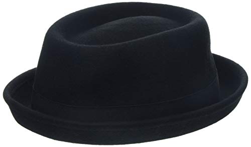 Hawkins 100% Wollfilz Pork Pie Hut Fedora Trilby – Schwarz – Schwarz, Schwarz, Small / Medium (57 cm) – 100% Wolle – Verfügbar in S/M – 57cm And M/L – 59cm. – 100% Wolle Porkpie Hut mit einem Runden Krone und Gedreht Up Brim. – Wischen Reinigen Nur. – Kommt in einer Farbe – Schwarz