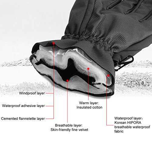HiCool Ski- und Snowboardhandschuhe HiCool Skihandschuhe sind komfortable und äußerst robust, die mit einer Vielfalt an Funktionalitäten begeistert. Das hochwertige Material ermöglicht absolute Wind- und Wasserdichtigkeit, während hohe Atmungsaktivität auch bei schnellen Abfahrten für angenehmes Tragegefühl sorgt. Die Verarbeitung im Inneren des Handschuhs ermöglicht ein Wohlfühlklima gerade bei kalten Außentemperaturen. Die leicht gummierten Handinnenflächen beugen derweil Abrutschen bei Skiern, Skistöcken oder anderen Gegenständen vor. Darüber hinaus verleihen diese bei Skifahrern ein optimales Stockgefühl. Zudem ist die Weite des Skihandschuhes durch eine Kordelzug mit Stopper individuell anpassbar. Des Weiteren garantiert das elastische Fleece und der Gummizug am Handgelenk einen perfekten Sitz. Dies beugt wiederum das Eindringen von Schnee vor. Größe S: 8-8.5cm M: 8.5-9.5cm L: 9.5-10.5cm XL: 10.5-11.5cm Hinweise: Achtung: Die Handschuhe können vor Wind, Regen und Schneee schützen. Aber die können nicht in Wasser eingetaucht werden und darin funktionieren. Die Handschuhe in Lila sind für Damen, andere Farbe sind für Herren. Hier können Sie Skibrillen finden: B01C3YWG6G Hier können Sie Skihelme finden: B01MAW0TMO Hier können Sie Smartphone Handschuhe finden: B01LVXMT0E Lieferumfang: Ein paar HiCool Skihandschuhe Garantie: 1 Jahr