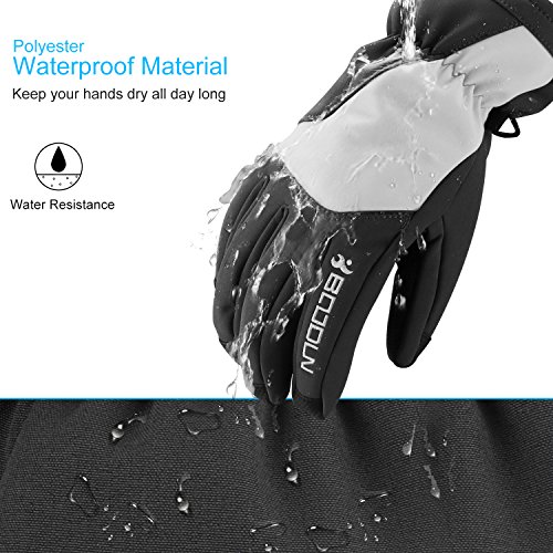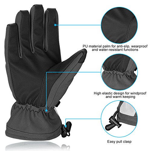 HiCool Ski- und Snowboardhandschuhe HiCool Skihandschuhe sind komfortable und äußerst robust, die mit einer Vielfalt an Funktionalitäten begeistert. Das hochwertige Material ermöglicht absolute Wind- und Wasserdichtigkeit, während hohe Atmungsaktivität auch bei schnellen Abfahrten für angenehmes Tragegefühl sorgt. Die Verarbeitung im Inneren des Handschuhs ermöglicht ein Wohlfühlklima gerade bei kalten Außentemperaturen. Die leicht gummierten Handinnenflächen beugen derweil Abrutschen bei Skiern, Skistöcken oder anderen Gegenständen vor. Darüber hinaus verleihen diese bei Skifahrern ein optimales Stockgefühl. Zudem ist die Weite des Skihandschuhes durch eine Kordelzug mit Stopper individuell anpassbar. Des Weiteren garantiert das elastische Fleece und der Gummizug am Handgelenk einen perfekten Sitz. Dies beugt wiederum das Eindringen von Schnee vor. Größe S: 8-8.5cm M: 8.5-9.5cm L: 9.5-10.5cm XL: 10.5-11.5cm Hinweise: Achtung: Die Handschuhe können vor Wind, Regen und Schneee schützen. Aber die können nicht in Wasser eingetaucht werden und darin funktionieren. Die Handschuhe in Lila sind für Damen, andere Farbe sind für Herren. Hier können Sie Skibrillen finden: B01C3YWG6G Hier können Sie Skihelme finden: B01MAW0TMO Hier können Sie Smartphone Handschuhe finden: B01LVXMT0E Lieferumfang: Ein paar HiCool Skihandschuhe Garantie: 1 Jahr