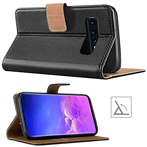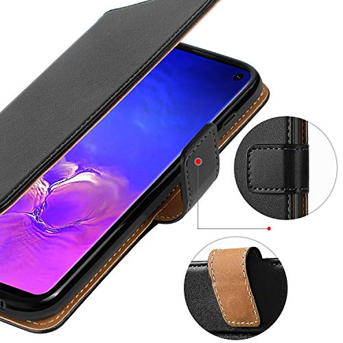 HOOMIL Ledertasche -Travel – für Samsung Galaxy S10 mit Kartenfach, Extra Dünn, Tasche Schwarz Premium Design Leder Hülle Premium Material Die HOOMIL Ledertasche im Bookstyle bietet perfekten Schutz für Ihr Samsung Galaxy S10 Smartphone (6.1 Zoll) mit Kartenschlitzen, Magnetverschluss und Standfunktion, in stylisches Design lässt Ihr Handy im alltäglichen Gebrauch professioneller und moderner aussehen. KOMPATIBLES MODELL: SAMSUNG GALAXY S10 Leder Tasche Case Hülle im Bookstyle mit Standfunktion Kartenfächer für Samsung Galaxy S10 Case 1. Das weich Innenfutter schützt den Bildschirm vor Flecken und Dreck. 2. Hochwertige Kunstleder und stoßfestem TPU beschützt Schutztasche Ihr Samsung Galaxy S10 vor ungewollten Stürzen, Beulen, Erschütterungen und Kratzern. Funktionen: Zwei Kartensteckplätze und eine Seitenfach, um Ihre Karten sicher zu verstauen. Der Praktische magnetische Verschluss beschützt Ihr Bildschirm vor ungewollten Kratzern. Die Klapp etui hat es eine eingebaute Standfunktion, mit der Sie in mehreren Bildwinkeln lesen oder Videos anschauen können. Präzise Aussparungen, alle Tasten und Anschlüsse sind problemlos zu erreichen. Es sitzt sehr sicher in der Handyschutzhülle. Die Samsung Galaxy S10 flip case hat für alle Zugänge und Schalter gute Aussparungen und so kann man alles wie gewohnt bedienen, Kopfhörer verwenden, die Kamera benutzen usw.