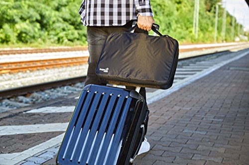 Clever packen mit HOPEVILLE HOPEVILLE ist eine junge deutsche Marke, die von Reise-Enthusiasten mit dem Ziel gegründet wurde, Ordnung ins Reisegepäck zu bringen und Reisen leichter und stressfrei zu machen. Highlights • 380 Gramm leichte Hemdentasche für bis zu 5 Hemden, Blusen oder T-Shirts • Doppelte, hochwertige YKK ® Reisverschlüsse mit zusätzlichen Zughilfen • Fach für Accessoires und elastische Bänder für Krawatten und Gürtel. • Extra verstärkte Ober- und Unterseite für einen besonders guten Schutz der Kleidungsstücke. Material • Hemdentasche aus hochwertigem Nylongewebe • YKK ® Reisverschlüsse mit zusätzlicher Zughilfe Lieferumfang • Eine HOPEVILLE Hemdentasche