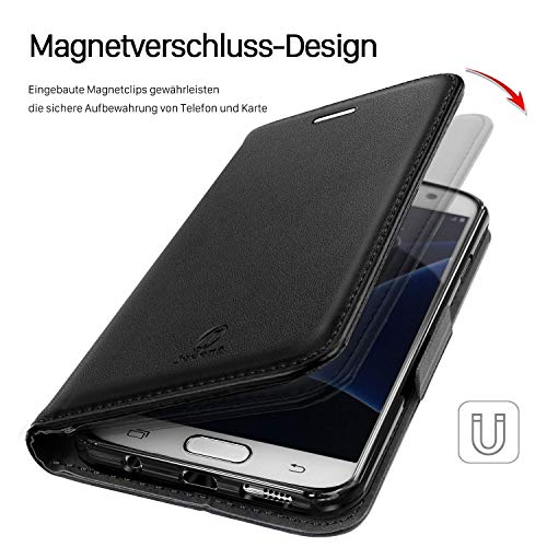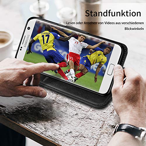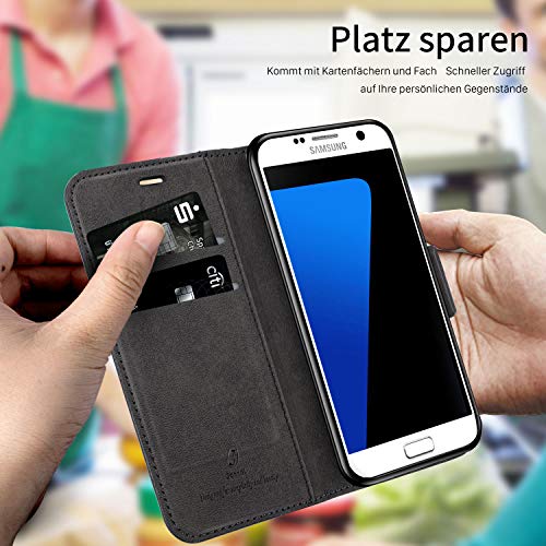 Die für Samsung Galaxy S7 Hülle besteht aus hochwertigem PU-Leder, schmutzabweisendem Innenfutter und flexiblem TPU. Ihre klassische schwarze Farbe, kombiniert mit stilvollem Foliodesign, macht die hüllen noch edler und eleganter. Ideal für Männer und Frauen für den täglichen Gebrauch und Geschäftsreisen. Funktionen: 1. Präzise Aussparungen, alle Tasten und Anschlüsse sind problemlos zu erreichen. 2. Hergestellt mit sicherem Magnetverschluss und ausgestattet mit zwei Kartenfächern und einem Bargeldfach. 3. Das Galaxy S7-Gehäuse besteht aus strapazierfähigem PU-Leder, um Staub, Stöße und Kratzer zu minimieren. 4. Die Klappetui hat es eine eingebaute Standfunktion, mit der Sie in mehreren Bildwinkeln lesen oder Videos anschauen können. Ein jahr garantie Ein jahr garantie – J Lecent hält sich stets an die „customer first“ Philosophie. Wir bieten 12 Monate Garantie und professionellen Kundenservice. Wenn Sie Fragen oder Probleme mit Ihrer Handyhülle haben, wenden Sie sich bitte an uns.