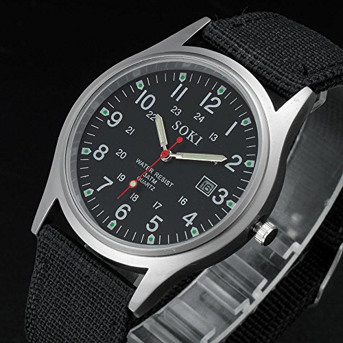 Willkommen in jieGREAT, können Sie ein angenehmes Einkaufserlebnis haben! Wenn Sie Probleme mit unseren Produkten haben, können Sie sich jederzeit an uns wenden. Wir werden unser Bestes tun, um Ihnen zu helfen. Military Army Men es Date Canvas Band Edelstahl Sport Quartz Wrist WatchFunktionen:100% neu und hochwertigGeschlecht: MännerFashion Lovely And High Quality Sports Watch!Uhrengehäuse Diameter:4,2cm ca.Uhrengehäuse: 1,2 cm ca.Band Length:23,5cm ca.Band Breite: 2,2cm ca.Bandmaterial: LeinwandGehäusematerial: EdelstahlHinweis: Die Farbe des realen Gegenstands, die Sie erhalten, kann von dem Listenbild aufgrund der unterschiedlichen Kameralinse und der unterschiedlichen Lichtumgebung abweichen.Paket inklusive:1 x Uhr