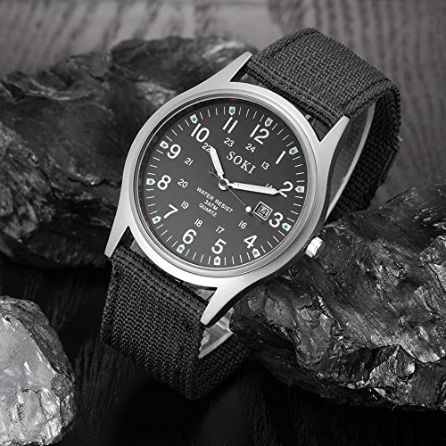 ❤❃ Herrenuhr Räumungsverkauf❤❃,Military Army Men es Date Canvas Band Edelstahl Sport Quartz Wrist Watch BKby jieGREAT