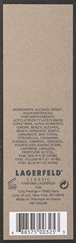 Classic von Carl Lagerfeld ist klassisch, unverwechselbar und innovativ. Sein würziger, bis hin ins orientalische reichender Duftcharakter verleiht seinem Träger eine sehr authentische Ausstrahlung und anziehende Aura. Im Auftakt frisch und lebendig durch Bergamotte und Basilikum, gibt sich die Herznote feurig und geheimnisvoll durch Sandelholz und Patschuli. Der Fond strahlt mit der sinnlichen Wärme von Amber und Vanille.