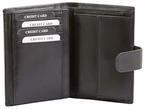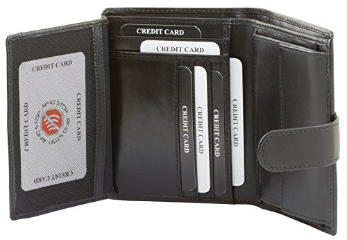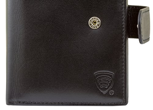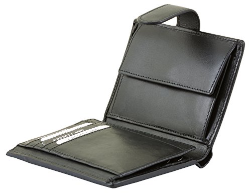 Diese elegante RFID Schutz Ledergeldbörse aus weichem Rind-Nappaleder bietet viele Fächer in kompaktem Design. Das feine, glatte Echtleder ist von besonderer Qualität und nicht zu vergleichen mit Billigledern oder Lederimitaten. Die Nähte sind besonders sorgfältig und sauber verarbeitet. Eine stilvolle Herren Geldbörse aus echtem Qualitätsleder zum günstigen Preis. Ausstattung der Geldbörse: – 9 Fächer für Kreditkarten (1x durchsichtig), – 4 Fächer für Ausweise und Papiere usw. davon 1 mit Klarsichtfenster, – 2 getrennte Scheinfächer und – 1 Münzfach mit Druckknopf. – Im geschlossenen Zustand sind die Maße ca. 13 x 9,5 cm.